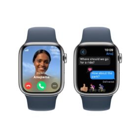Apple Watch Series 9 [GPS + Cellular 41mm] Smartwatch with Silver Stainless steel Case with Storm Blue Sport Band S/M. Fitness Tracker, Blood Oxygen & ECG Apps,Always-On Retina Display,Water Resistant