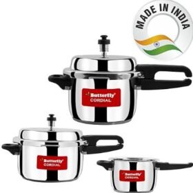 Butterfly Cordial 2, 3 & 5 Litres Outer Lid SS Pressure Cookers | Induction & Gas Stove Compatible | ISI Certified | 2 Years Manufacturer’s Warranty