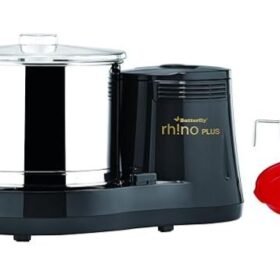 Butterfly Rhino Plus 2 Litres Table-Top Wet Grinder | 150 Watts | Shockproof ABS Body | Coconut Scrapper Attachment | Dough Kneader | Stainless Steel Drum | 2 Years Manufacturer’s Warranty | Grey