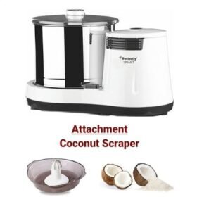 Butterfly Smart 2 Litres Table-Top Wet Grinder|150 Watts|Shockproof ABS Body| Coconut Scrapper Attachment|2 stones with 4-Way Grinding| Stainless Steel Drum | 2 Years Manufacturer’s Warranty | White