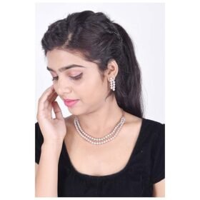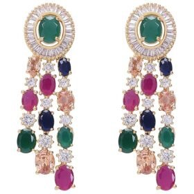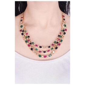 RATNAVALI JEWELS American Diamond Fashion Jewellery Red Green Blue White Multi Layer Necklace Set with Earring for Women/Girls RV3006M