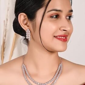 Ratnavali Jewels American Diamond CZ Rose Gold Plated Designer Jewellery Set/Necklace Set with Chain & Earring for Girls/Women (RVA102RG)