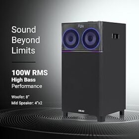 AKAI Bluetooth Party Speaker with Mic High Bass & Sound – Dynamic LED Lights 100W Home Theater Music System – Karaoke Speaker with Mic System – Support, AUX, USB