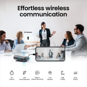 Digitek® DWM-102 Wireless Microphone System with ANC Noise Reduction & 10-12 Hrs Working Time, Type C Power Adapter, 30m Range, Internal Recording, Versatile Modes, for Smartphone & DSLR Camera