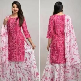 MEERA FAB Women’s Cotton Printed Anarkali Kurta with Palazzo & Dupatta Set