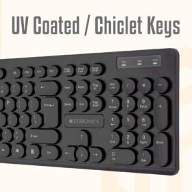ZEBRONICS K24 USB Keyboard with Long Life 8 Million Keystrokes, Silent & Comfortable Use, Slim Design, Retractable Stand, 1.3 Meter Textured Cable, Chiclet Keys and Uv Coated Keycaps