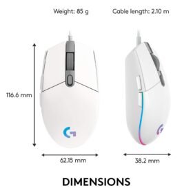 Logitech G102 Light Sync Gaming Wired Mouse with Customizable RGB Lighting, 6 Programmable Buttons, Gaming Grade Sensor, 8K DPI Tracking,16.8mn Color, Light Weight – White