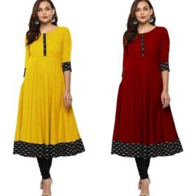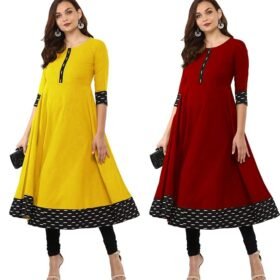 NATEK Cotton Anarkali Printed Border Kurtis for Women Combo Pack of 2