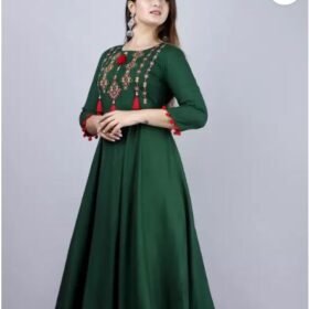 Women Embroidered Cotton Rayon Anarkali Kurta (Dark Green)