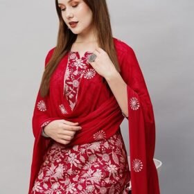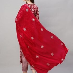 GoSriKi Women’s Cotton Blend Printed Straight Kurta with Pant & Dupatta