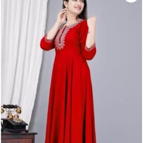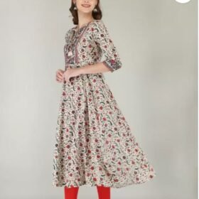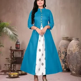 Women Block Print Viscose Rayon Anarkali Kurta (Blue)