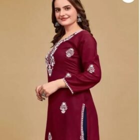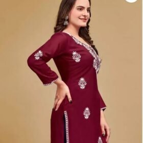 Women Chikan Embroidery Viscose Rayon Straight Kurta (Maroon)