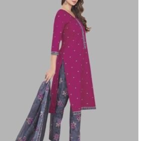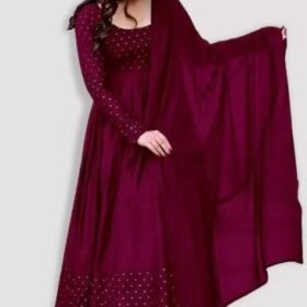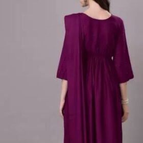 Women Applique Art Silk Anarkali Kurta With Attached Dupatta (Purple)